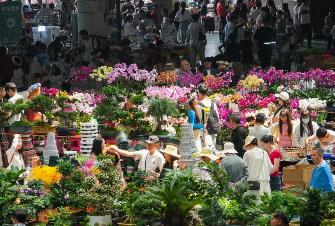 2025年7月13日,昆明斗南花卉市场人头攒动,热闹非凡。郑益摄(中经视觉)